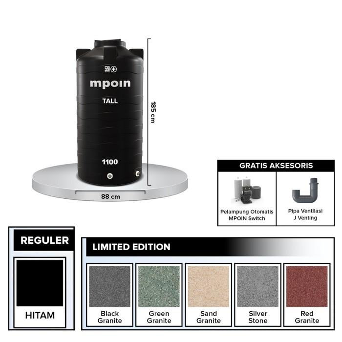 1100 L / MPOIN + TALLTW1100 Water Torrent Tangki Tandon Air PVC Green + Acc Set