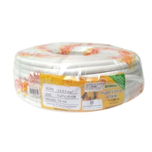 3 INTI x 2.5 MM x 50 M / KITANI NYMHY Serabut Kabel Tembaga SNI Putih Roll
