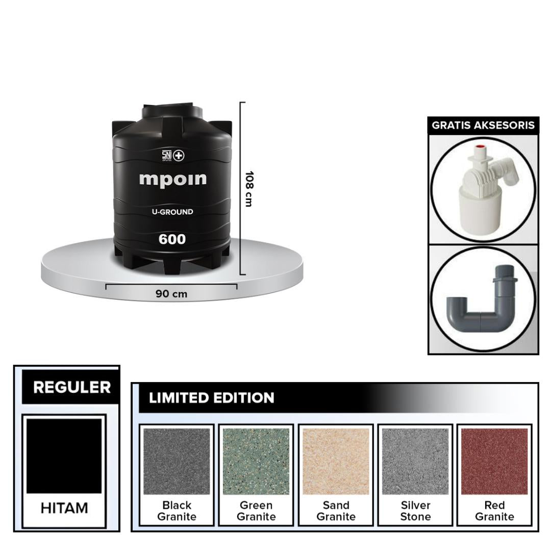510 L / MPOIN + U GROUND UG 600 Water Torrent Tangki Tandon Air PVC Hitam + Acc Set