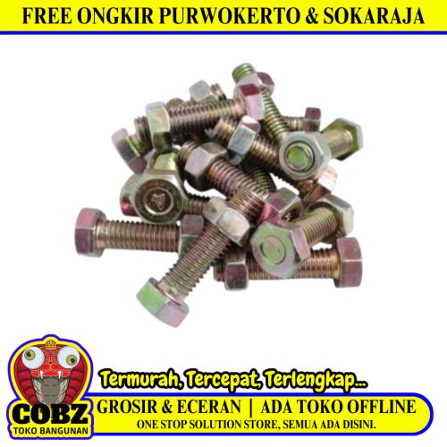M 8 x 30 MM / TM Baut Mur Hexagon Bolt Nut Flat Head Kuning Biji