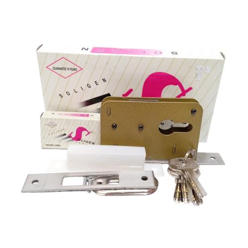 SOLIGEN Slot Body Kunci Pintu Geser Lidah Mekar Sliding Door Set